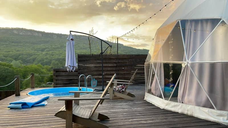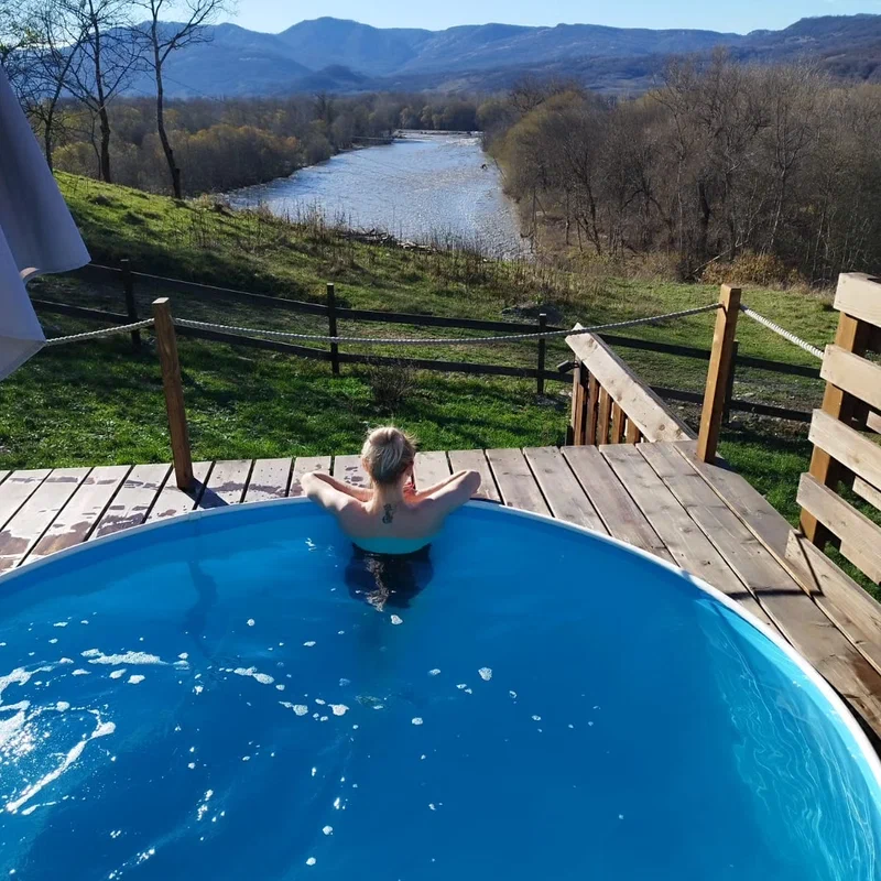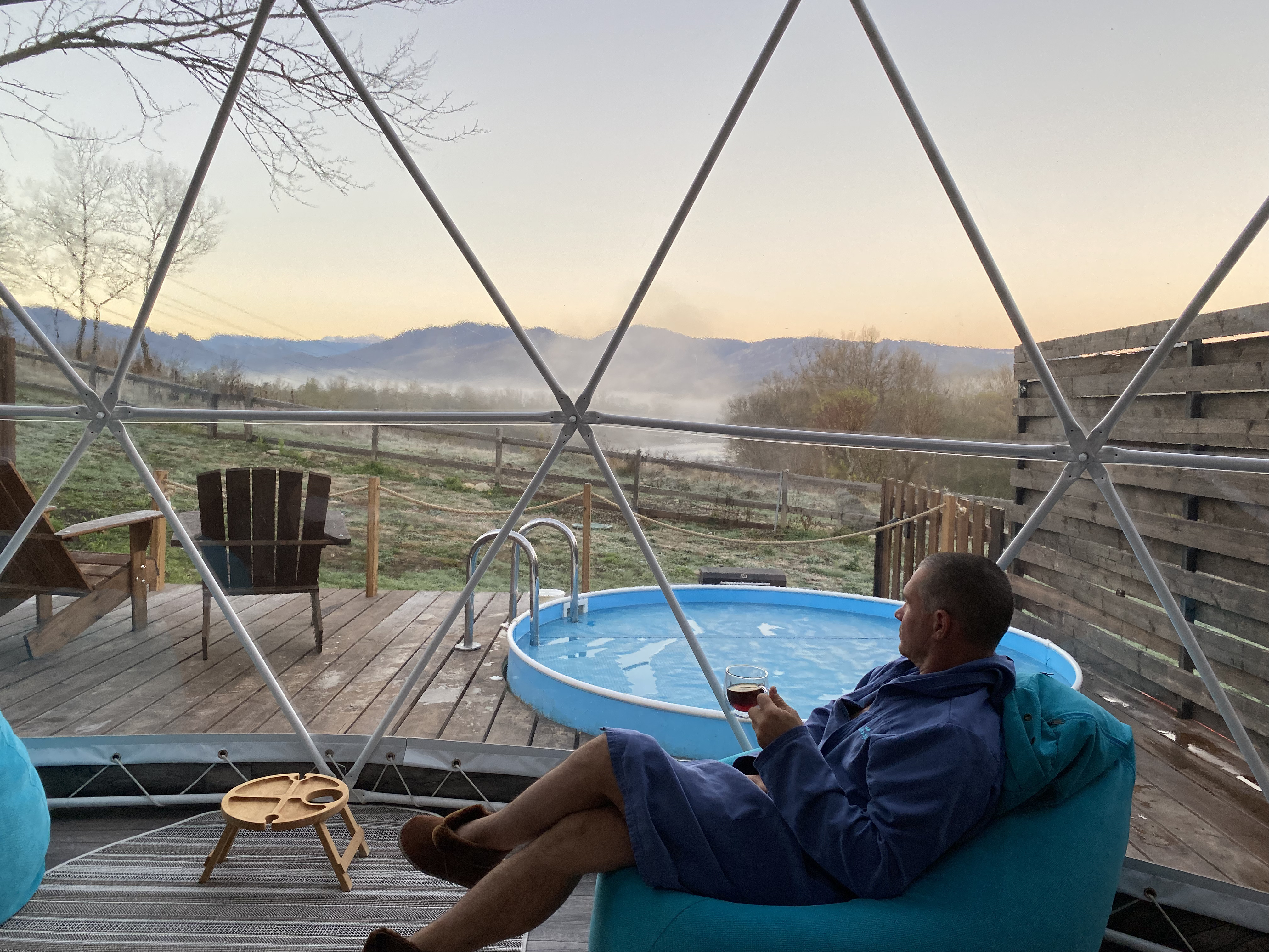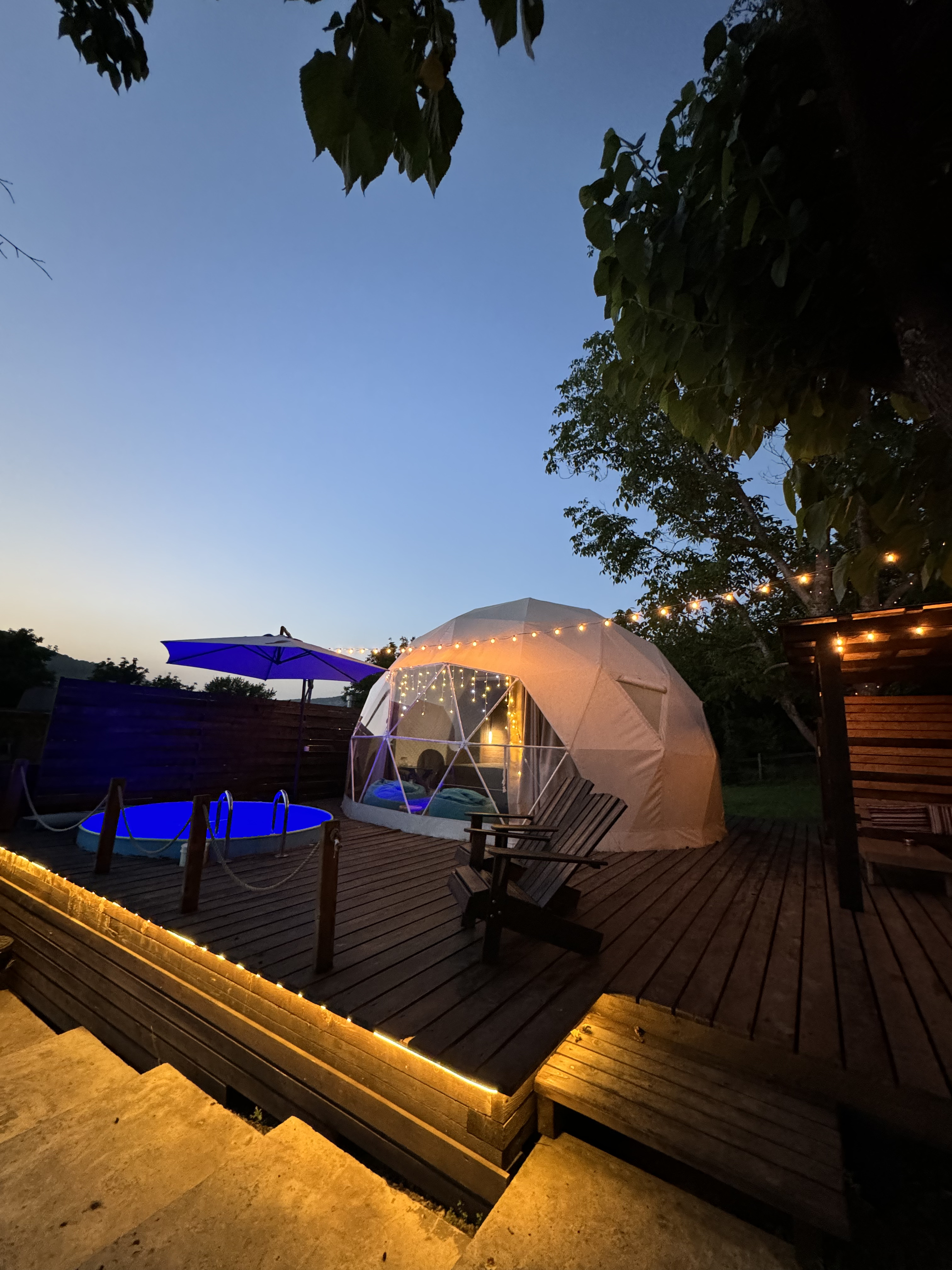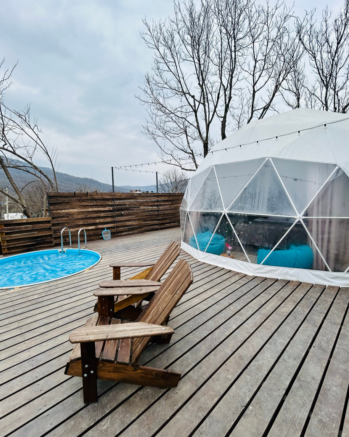 Личное джакузи у каждой сферы с подогревом (36'), гидромассажем и ночной подсветкой — расслабление в любое время года